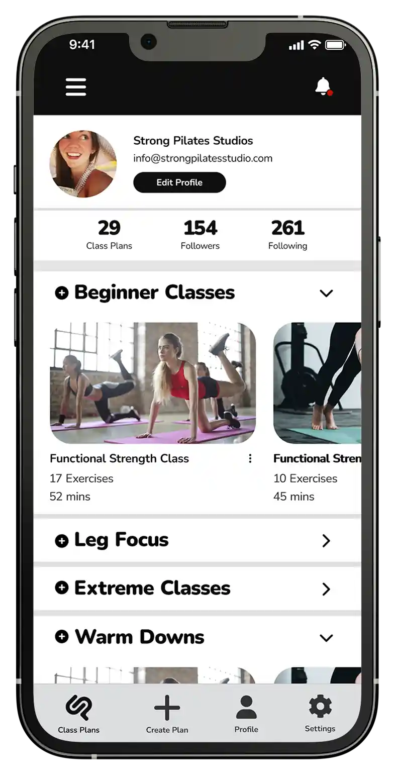 - Create and share class plans for your clients when they are away from your studio, keeping them always connected.